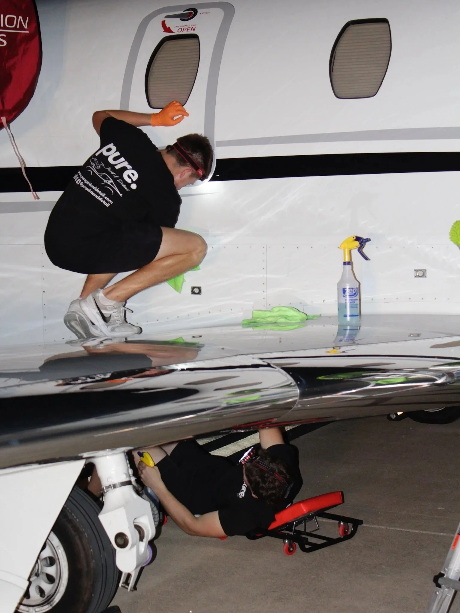 Our technicians are certified aircraft detailing professionals trained in aviation-specific best practices, procedures, and materials. As a team, we have detailed more than 50 different aircraft, gaining hands-on experience across a wide range of airframes, cabin layouts, and exterior finishes.